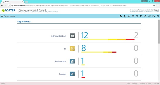 You can also group the risks under different departments. There is no limit for this, you can configure as many departments as exist in your organization. The KPIs will be calculated based on the departmental risks and issues.