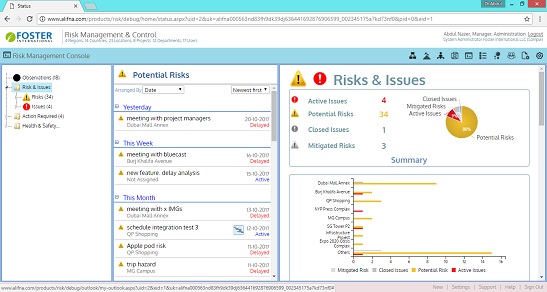 RimpeX risk management console allows you to view and manage risks at any level of detail. A single click on the required summary section on the left side shows the list of items in the middle and its details on the last section. You can view, modify, approve, etc based on your access privilege on the selected risk.