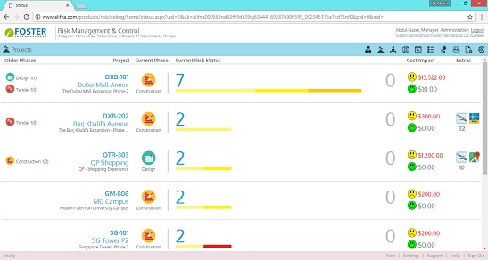 RimpeX intelligent project dashboard gives you comparative risks KPIs and associated modules associated with each project.